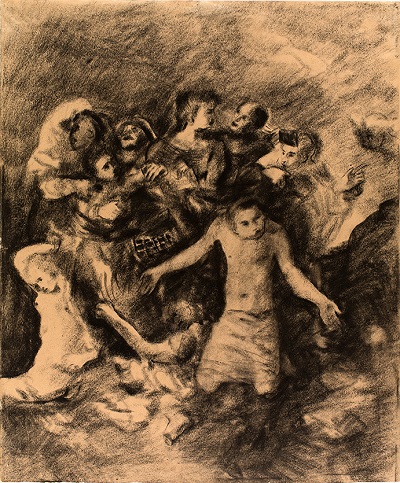 Фрагмент многофигурной композиции. 1921. Цикл «Воскрешение мертвых». Бум., прессованный уголь © Государственная Третьяковская галерея